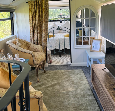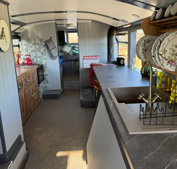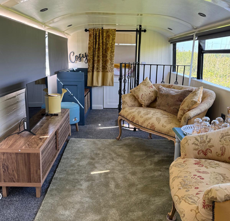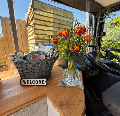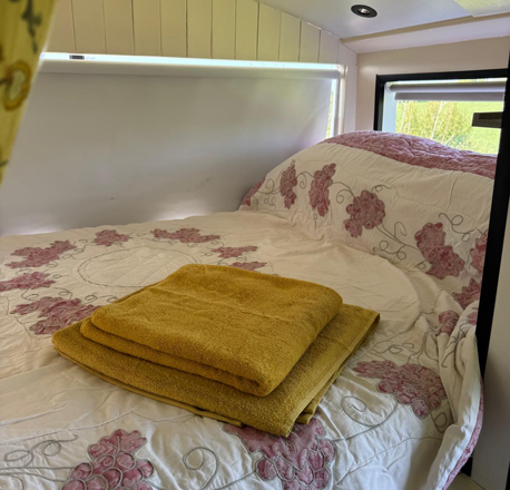 I discovered the bus on one of my walks through the village and was intrigued, so I had to come and stay! Jane was the perfect host, so welcoming but gave us the privacy to enjoy ourselves. The views are utterly breathtaking, and there really is almost complete silence apart from birdsong. The bus was thoughtfully laid out with everything we could possibly need. The wood burner was a great addition for the evening when the temperature dropped! Super comfy beds, clean and cosy! Highly recommend
