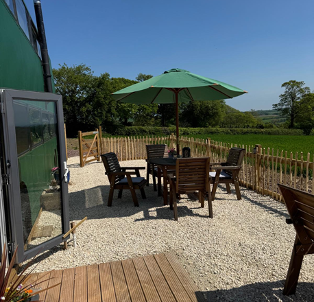 As you approach you will find the patio area with plenty of seating and access to a barbecue. Just fire that up and enjoy the outstanding view that pans out in-front of you looking down in the distance to Sidmouth Gap. Just off the patio is the bathroom kitted out with a good size shower and toilet. The Bus is completely off-grid with Solar Panels on the roof and backup generator.